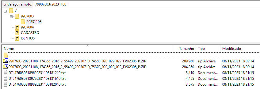 Por exemplo, o equipamento de série XX1234, enviando arquivos do dia 27/10/2023:
